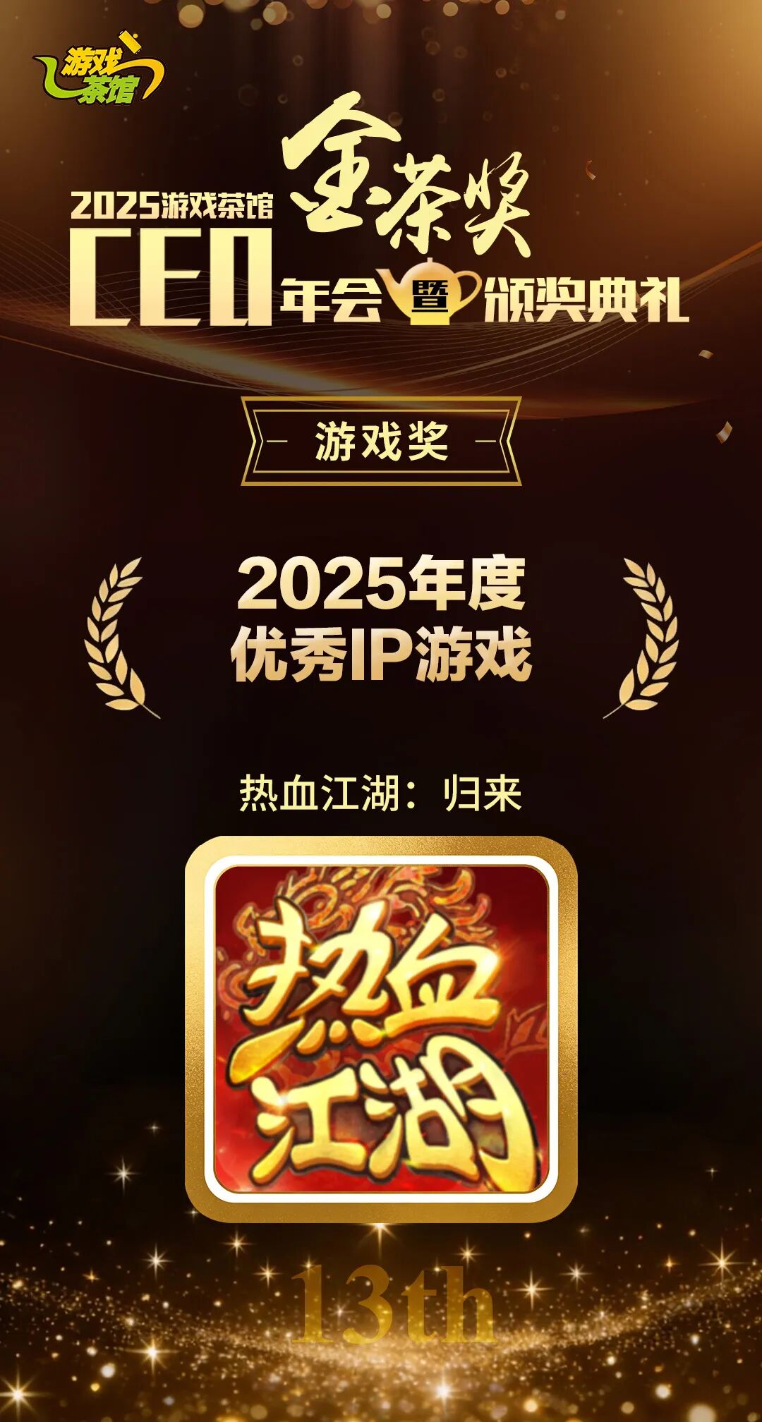 今日,第十三届金茶奖颁奖典礼在上海圆满落幕。作为国内游戏行业极具权威性的年度盛会,本届金茶奖汇聚全行业顶尖企业与优质作品,恺英网络(002517)凭借稳健的产业布局与突出的产品实力,荣膺“2025年度最具影响力企业”,旗下产品《热血江湖:归来》同步摘得“2025年度优秀IP游戏”大奖。